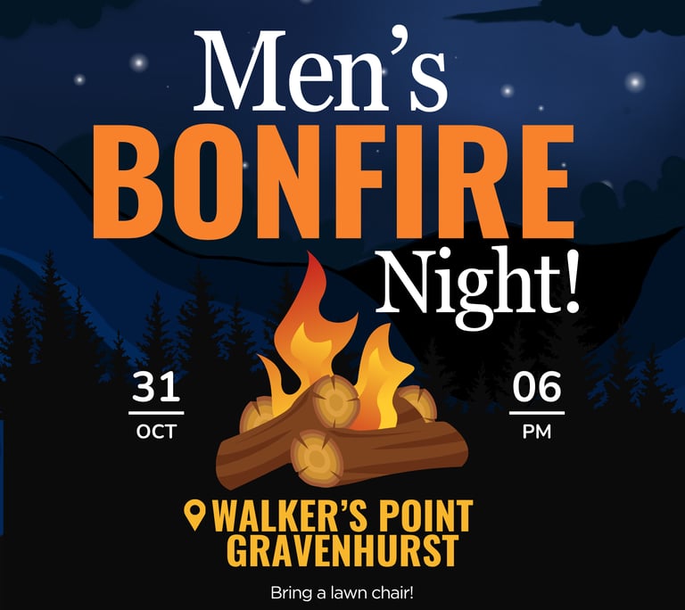 Hey Men!— we’re firing up a bonfire and hanging out together on Friday, October 31st at 6PM in Gravenhurst. It’s going to be a relaxed night with good conversations, laughs, and time to connect with other guys from Life Church Muskoka.